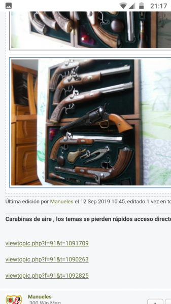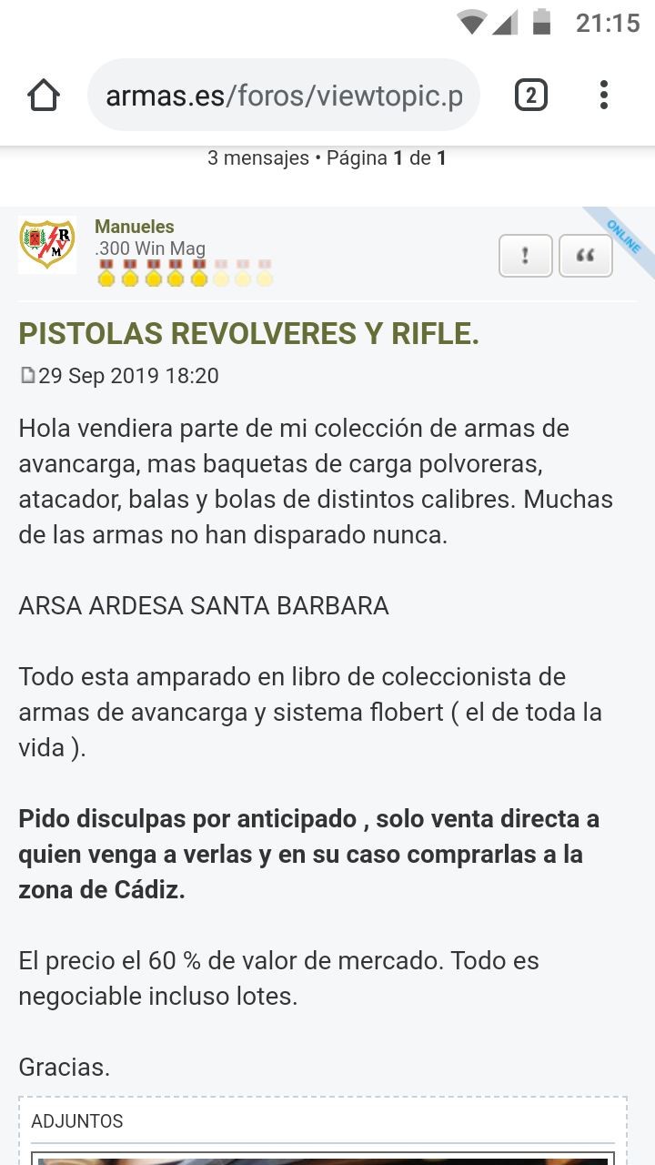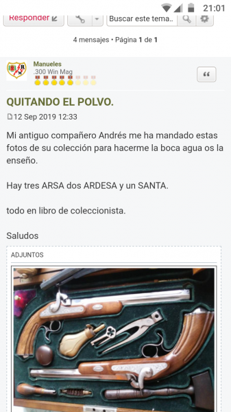 Me asalta una duda, usted indicó en un hilo, que esas armas no eran suyas, que eran de su amigo Andrés. Le adjunto la captura de dicho hilo. ¿Son suyas, o de un amigo?, se lo digo, y no se moleste por ello, por saber a ciencia cierta a quien hay que dirigirse.