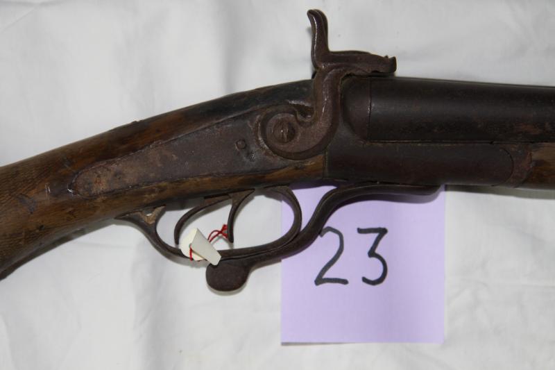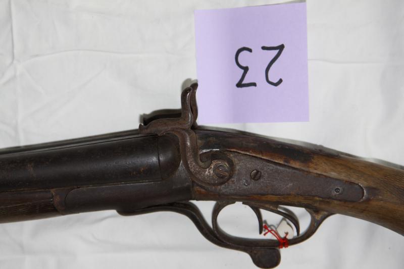 Escopeta de caza de retrocarga, de dos cañones. Fuego anular. Mecanismo de tipo Lafoucheux con muelle real interno y trasero.