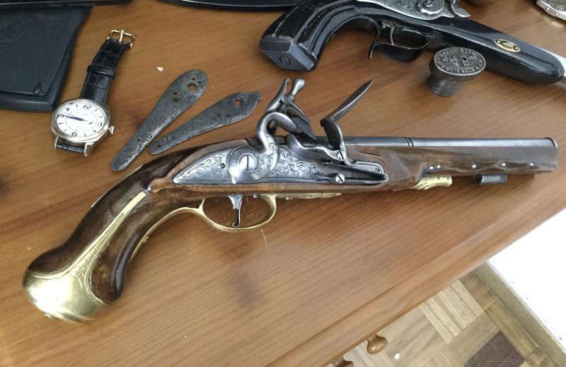 Vendo pistola de Dragones, calibre 54, marca G. Madera de cerezo, llave de gran calidad, latones grabados, placa de cornamenta de venado en empuñadura. Incluyo baqueta que no esta en foto, En Libro de coleccionista. No cambios.