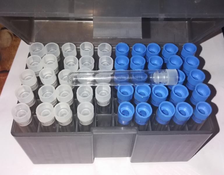 1 - caja con 50 tubos plástico para dosis de pólvora (6,5 cm.) -> 10 10