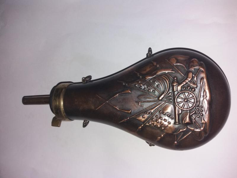 3 - polvorera antigua perfectamente repujada y funcionando correctamente -> 12 €