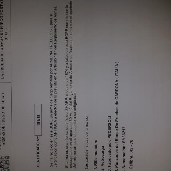 Re: Pedersoli S.788 1874 Sharps Long Range 34" 45-70 rebajado