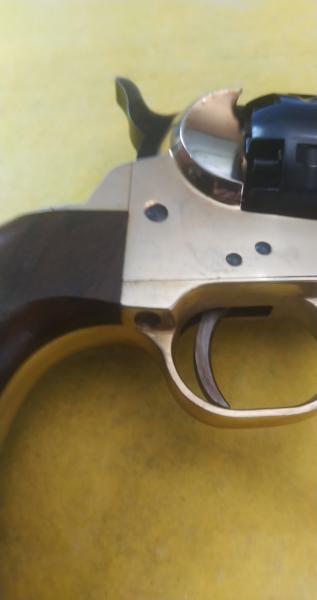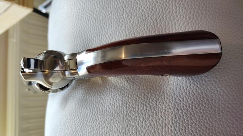 Marca Uberti, inox en maravilloso estado, cachas impecables, ni un arañazo, disparador finísimo y los mecanismos van suaves como un reloj suizo.