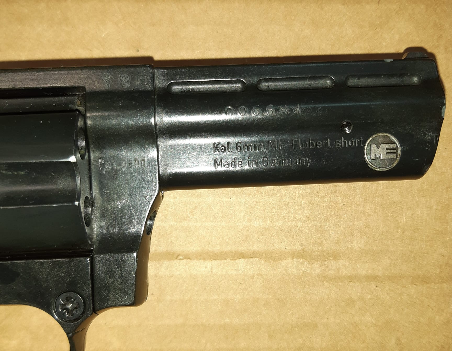 Revolver sistema Flobert cal. 6mm marca ME fabricación alemana guiado en AE, doy tres cajas de 100 unidades cada una y una empezada, 130€ portes a parte.