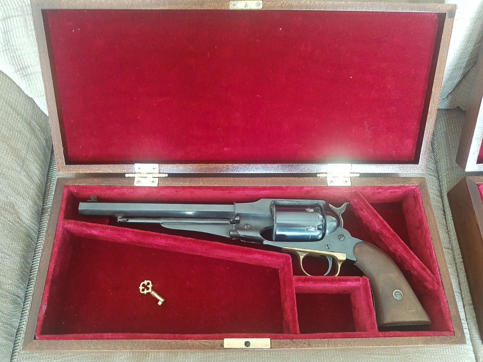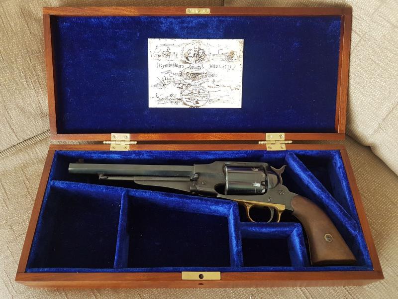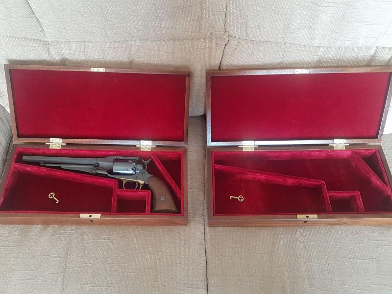 Esta para un Remington 1858. con tercioelo azul oscuro, y cerradura embutida. Esta se quedó en Almeria, gracias Juan A.