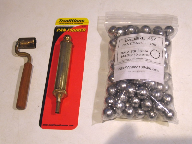 Se incluyen 100 bolas cal.457, un cebador para cazoleta y un dosificador de pólvora.