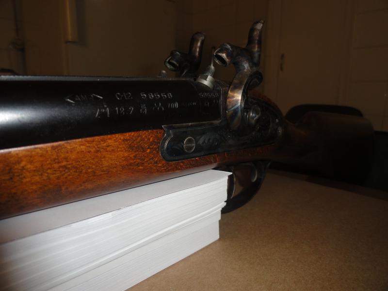 Un compañero del tiro, me ha pedido que le ponga a la venta esta escopeta de avancarga (No de cartuchos de pólvora negra) calibre 12, longitud del cañón 75cm, culata inglesa, marca A.M.R.