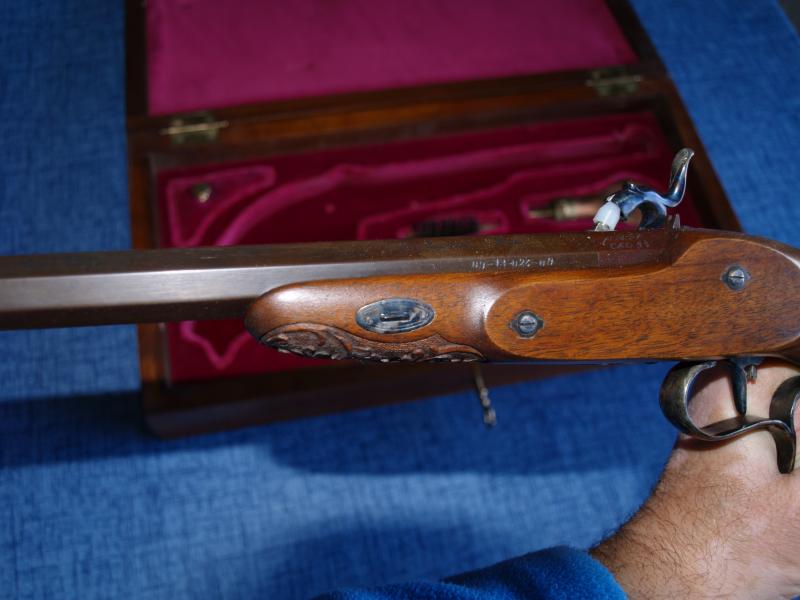 Vendo una Caja de duelo modelo de pistola, La Couture á Lyon Cal. 41 de lujo grabada tanto madera como metal con grabados la caja tiene complementos, todos sin estrenar, por quererla para colección por ese motivo está en el libro de colección, se pueden pasarla para concurso en AE, sin problemas, esta pistola si las pides por encargo, te la tienen que hacer y te dan un plazo de entrega, pues son artesanales, los precios actualmente son, la caja de una pistolas 380€ y la pistola el precio es 775€ o sea 1155€ total, si me hacéis una oferta, hablamos, la caja esta en Barcelona, fuera de Barcelona se pagan los porte el comprador, no acepto cambio.