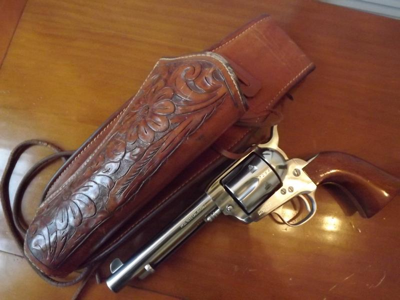 Vendo la funda Viking hecha a mano en Mejico de laqs fotografias, es valida para revolveres de 5-6", de cuero muy fuerte tiene una placa metalica en la parte interior para la practica sin riesgos del fast draw con la munición adecuada. Presenta como veis adornos florales muy marcados.