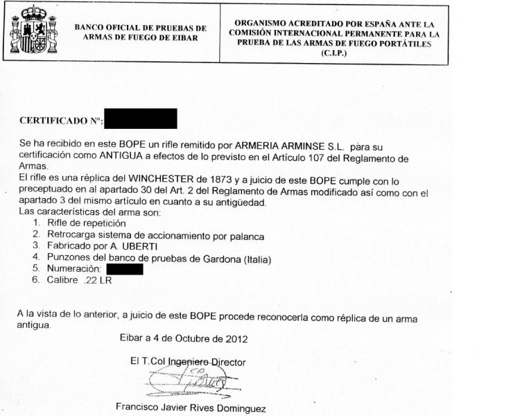 Tengo los certificados del Bope y de defensa, catalogándola como arma antigua. ¿Ni con eso te la guían en AE? Sí que se está poniendo dura la cosa.