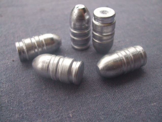 el proyectil tiene la banda inferior de diferente calibre para atar el papel, o engarzar la vaina metalica