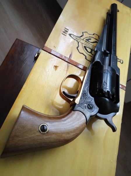 Vendo el revolver de las fotorfías, el grabado, el del medio en la primera foto, el anterior dueño lo tenia sin disparar, guiado con el DNI me dijo que fue un regalo de empresa, de cuando se regalaban esas cosas..., yo tampoco lo he disparado, lo he tenido de colección, atendiendo al estado del piecerio interior, está nuevo, aunque externamente tiene marcas de manipulación y las inherentes al paso del tiempo.