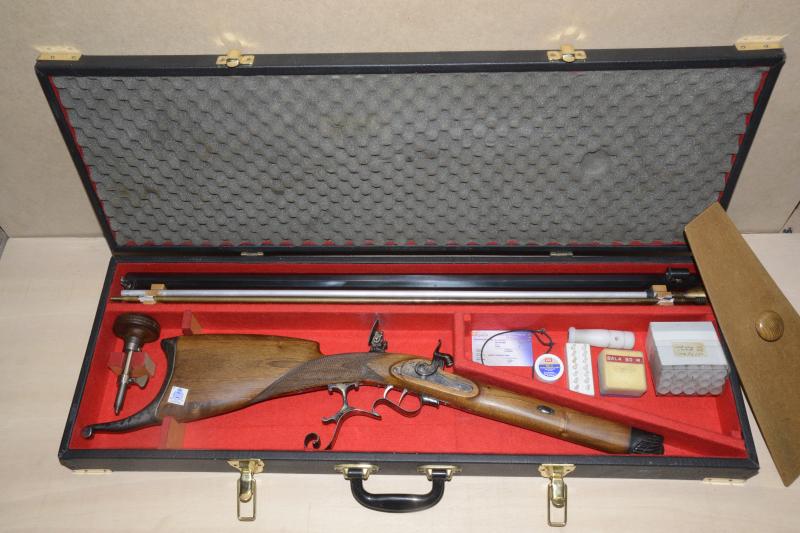 Vendo rifle de avancarga Schützen, fabricado de encargo por el armero Jesús Maria Araquistain de la empresa ARSA en Zaldibar Vizcaya, modelo y ejemplar unico. Varias de las armas fabricadas en ARSA han ganado campeonatos europeos y mundiales. Cañon Hawken Match Creer Moor Cal. 451, estriado tipo Henry de 7 estrias paso 1/20, culata de nogal al aceite con carrillera y remate en forma de concha en madera de ébano, diopter tipo suizo, gatillo con pelo, champiñon, rabera y guardamonte en hierro jaspeado. Estuche de madera tapizado, embudo de carga de aluminio, baqueta de latón con salvabocas y accesorios. Se ha utilizado muy poco, en muy buen estado de conservación. Precio 1.850 € más portes, negociables y no interesado en cambios.