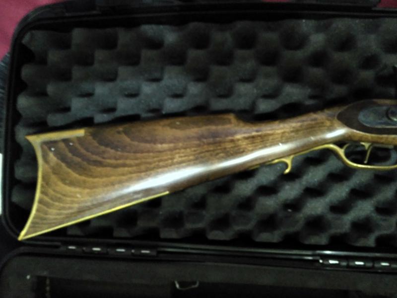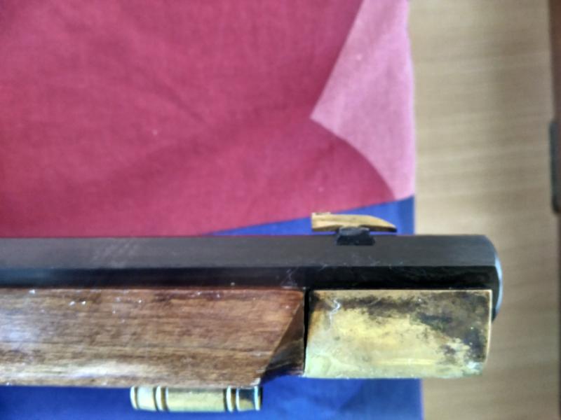 El rifle es calibre 45 usa bola .440 con calepino. No puedo hacer fotos del interior del cañon pues no tengo linterna. Está perfecto se puede ver y probar en Logroño.