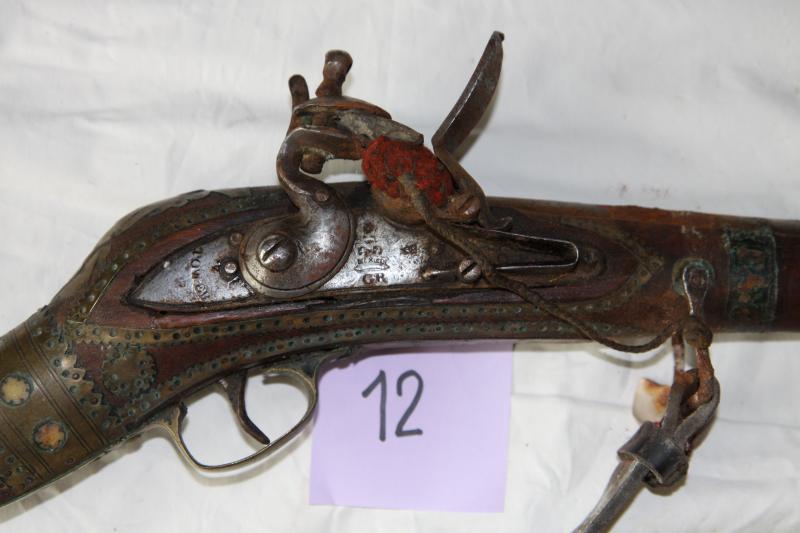 Fusil asiático. Llave de chispa, probablemente fabricada en una zona tribal del Norte de Pakistán, cañón probablemente fabricado en la India y caja probablemente afgana.