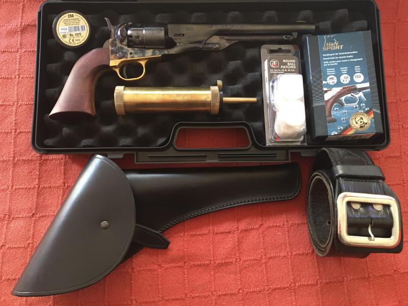 Hola. Disculpa la observación. Me llama la atención que con el revólver se vendan bolas del 0,440 y calepinos, cuando las balas esféricas para revólver no emplean calepino, pues se han de usar del 0,451 o del 0,454, en esta réplica de Pietta del Colt Army 1860 como en cualquier otro revólver de avancarga, pues a fondo de estría el cañón es del 45.