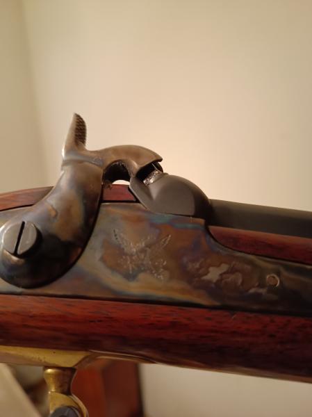 Buenos días. Estaría interesado en el rifle y quisiera saber si en la pletina trae grabada, al igual que el Pedersoli, el águila de los Estado Unidos y la fecha. Atentamente, Antonio.