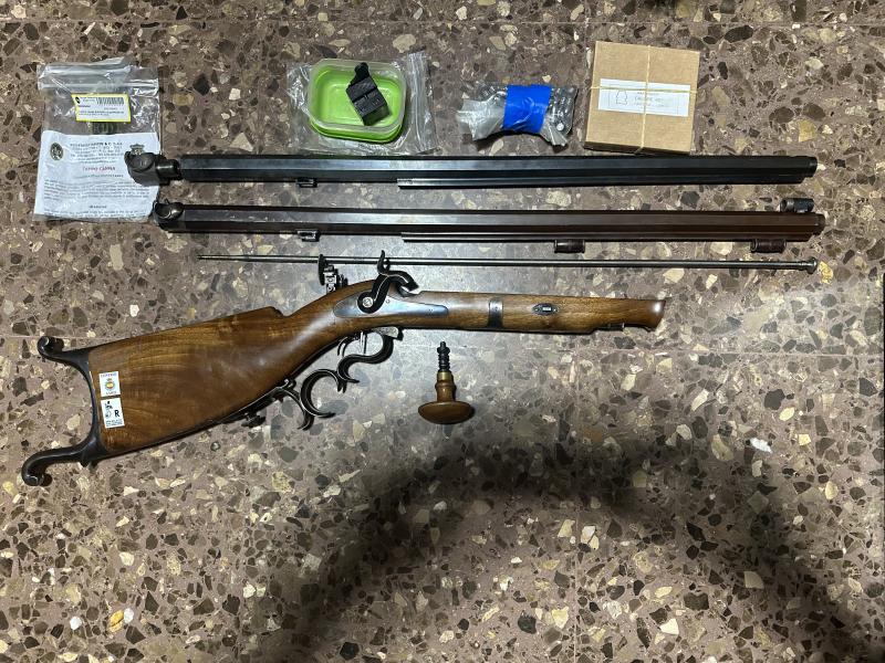 Vendo Rifle Pedersoli de avancarga en muy buen estado, modelo Waatlander calibre .35”, con un segundo cañón del calibre .45” con su tapón para ajustarlo.