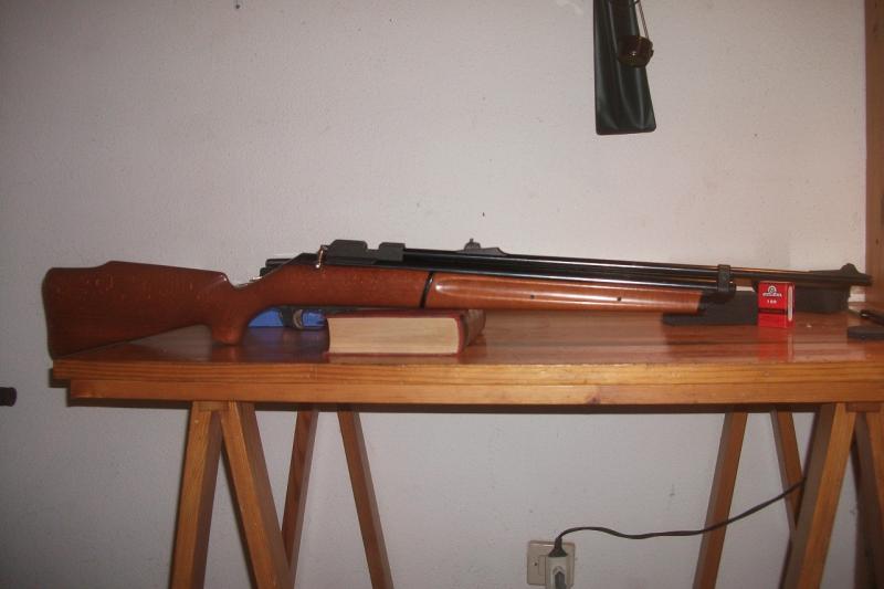 La segunda, la compré en una armería junto con el lote que había de a/c de segunda mano, repuestos etc. Era como la primera, pero la tuve que desmontar pues daba la impresión de haber estado enterrada -había tierra en la cámara de compresión de aire donde el émbolo comprime) Una limpieza y a disparar tan precisa como la primera. La madera me seguía pareciendo fea (y eso que la barnicé yo)y el gatillo largo, pastoso y plasticoso.