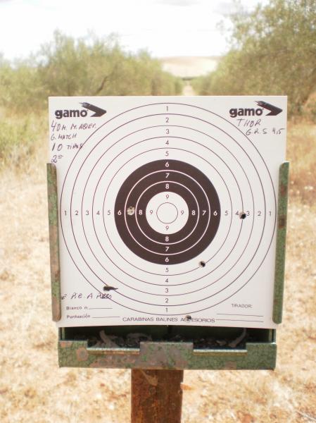No están mal. Creo que las puedes mejorar si ajustas miras de forma que apuntes A la base. Prueba con los Jsb exactamente y los rs. Tengo dianas a 50 mts nuevas con ella t otras con la marvic con cañón Black eagle a pulso que creo que son interesantes. A ver si pillo el portátil ue ando de vacas y con eonmovil es un rollo
