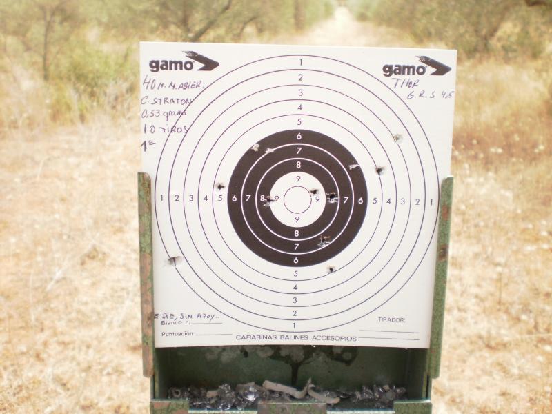Los Straton quedan descartados.Para mí ya es un éxito que la munición toque papel,tratándose del arma que es,económica y sencilla.El hecho de juntar unos tiros tocándose a esos metros,es para repensar cuando se dice que las Noricas no agrupan