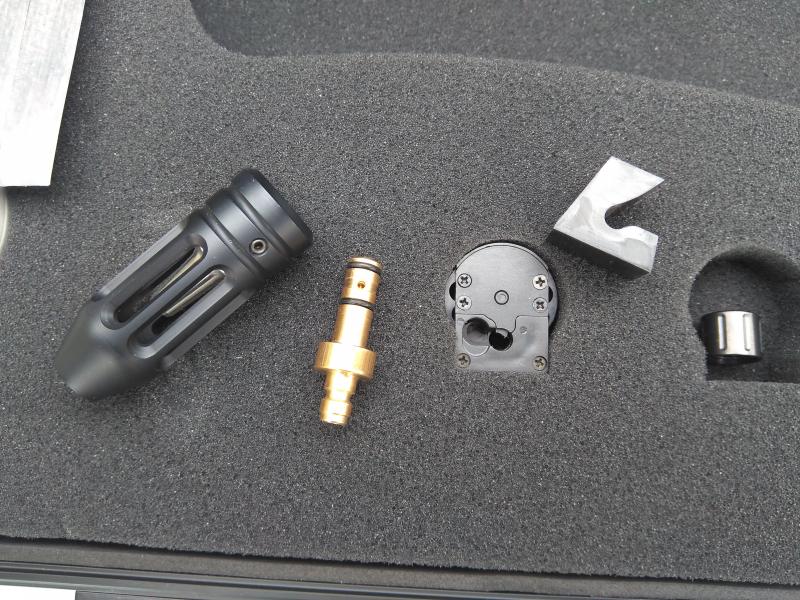 Nuestra unidad viene con todos los accesorios, maleta, silenciador, air stripper, cubre roscas, monotiro, sonda de carga con quikfill ya de fabrica. Todo impecable y muy bonito, quizas la unica sugerencia de presentacion que se me ocurre es que en la maleta de la espuma solo trae troquelado para silenciador y dos cargadores, faltatria troquelado para el resto de accesorios y quizas uno cuadrado para cosas que pueda necesitar llevar el husuario, pero esto es una minucia al lado de la impecable presentacion que viene la carabina.