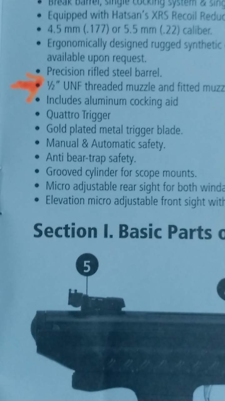 El silenciador no llega a quedar pegado a la carcasa del punto de mira. Hay como 2 mm. De separación. Es como si la rosca interior del silenciador fuese mas corta que la rosca de la hatsan. Algo que no pasa con el adaptador que trae para poder abatir el cañón, que si llega hasta el final.