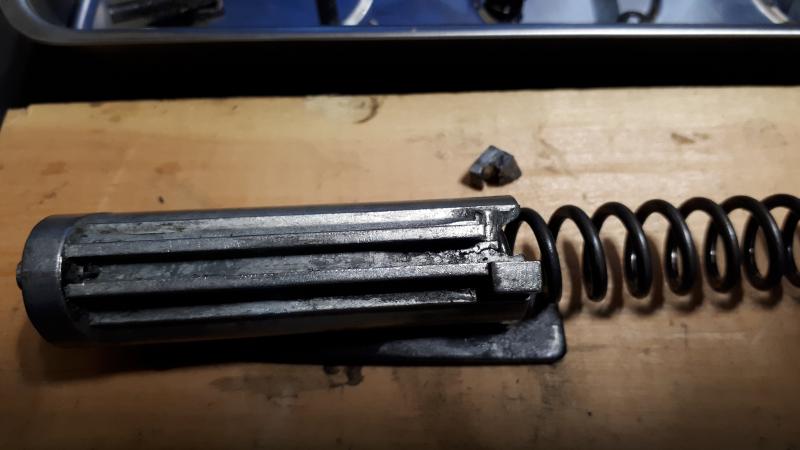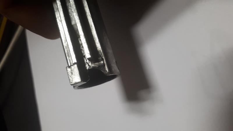 No manolo eso va por dentro de la camara de todas maneras tiene un diseño un tanto estraño curioso y malo a la vez esa patilla que se a roto es donde empuja el mecanismo de cargarla osea para que se quedde el muelle cargado luego el agujero que se ve pequeño junto con el de la patilla que se a roto cruza un pasador que es donde se queda trabado el gatillo es malo el sistema y encima en calamina el que me la vendio no savia nada de como estava por dentro y yo que me encuentro cuando llego a mi casa pego tres tiros y se rompe imaginate el mosqueo digo ya me la a pegado pero no eso se rompio aqui en casa como se podia aver roto cuando el tio me la enseño y disparo para enseñarme que estava bien el arma enfin ahora solo quiero arreglarla como sea para dejarla restaurada y a la bitrina jaja de mirame y no me dispares jajajaja .