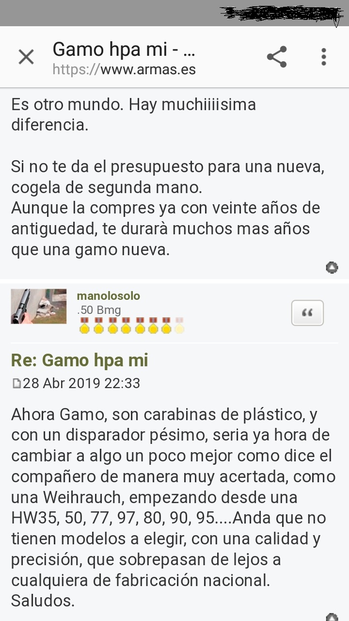 Que si José, estaba confuso y no le di el merecido aprecio a la calidad de las maravillosas y super precisas escopetillas de plástico de una marca prestigiosa de fama mundial como es Gamo, y es que comprarse una Weihrauch, es tirar el dinero. . .
