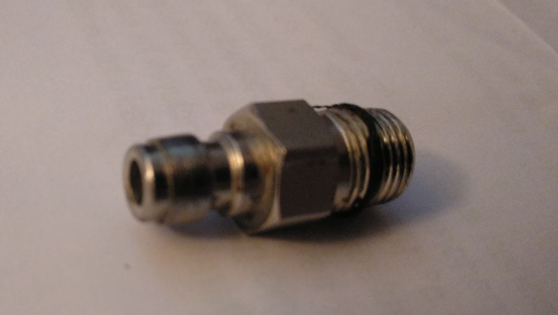 El problema es que el compresor de carga es para equipos de paintball y ya tiene toma foster de menor medida que se usa en los compresores de pcp o bombas manuales, tampoco van a adaptar el equipo para cargar una carabina sola. Por lo que necesito un reductor hembra para que rosque en el conector de la gamo coyote y el macho sea como el de la imagen que es el que usan para cargar los equipos de paintball que tiene las siguientes medidas de ancho sin medir los escalones 7,7 mm y el largo de la boquilla-solo la parte que entra en la foster del compresor- de 10,7 mm