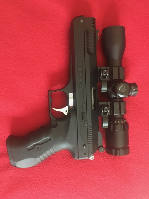 Hace tiempo que me gusta esta pistola , de hecho es la tercera que tengo , y si bien intuía que tiene una buena precisión , nunca le había hecho una prueba como la de hoy , ya que nunca dispuse de un visor lo suficientemente pequeño para montárselo. Ahora tengo este magnifico UTG 3-12x32 Bugbuster y he creído que era el momento de hacerlo.