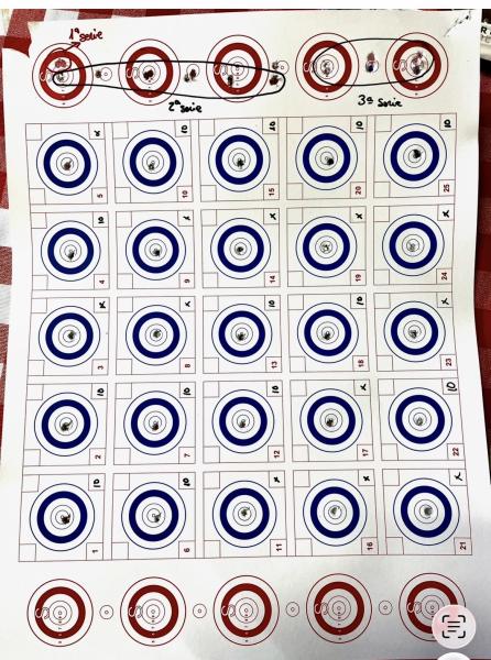 En la segunda serie y después de corregir, mete una media docena bastante centrado para mas tarde , caer y tener q volver a la posición inicial del visor.