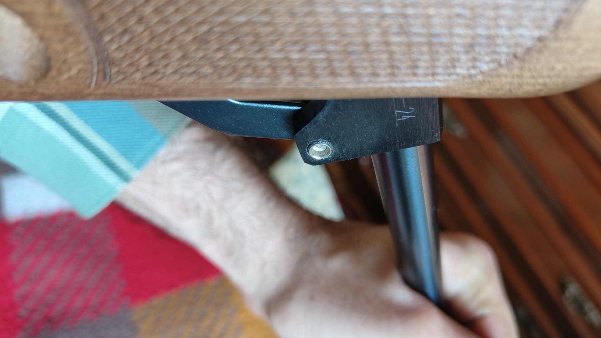 Está bien acabada en general, aunque no se libra de algún detalle típico de carabinas baratas, como por ejemplo este pasador de la biela de carga con báscula (que no entiendo porqué es de color plata, llama mucho la atención, supongo que para diferenciar del que montan en las de plástico) que roza con la culata y deja una marca