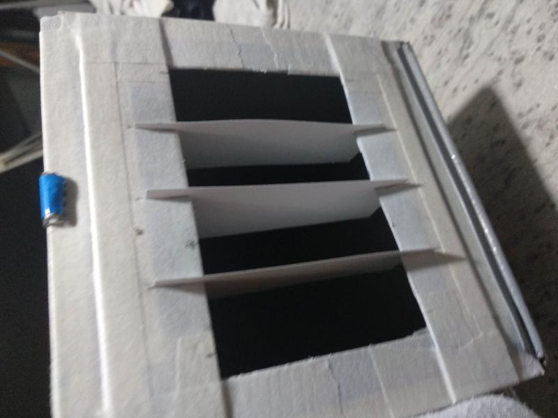 Yo he puesto unas cartulinas finas que tenía cortando las, mi primer problema ha sido que no lo veo y menos aún en fondo negro para situar la retícula, y al ponerlas un poco en oblicuo el problema ha sido que dos de ellas se han quedado a unos milímetros de caer.