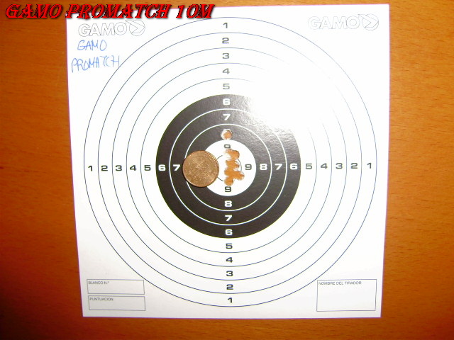 Esto está hecho a 10m con miras abiertas y a la primera. Tiros por diana: 10.