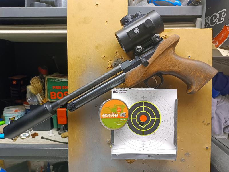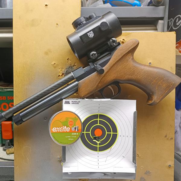 Ayer decidí probar con mi primera carabina Norica Titan de hace 20 años, no recuerdo cuantos julios tenía, tendré que cronografiarla.