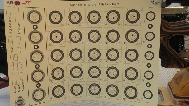 Y dianas Bench Rest a 25 mtrs, aquí el asunto cambia pues es un tiro por diana, el 10 tiene 1,5 mm, osea que hay que estar bien concentrado si quieres obtener resultados decentes, pues es difícil de narices.... en esta modalidad le afecta todo, la municion al uso, el infalible JSB Heavy 0,670grs pesados individualmente para evitar factores extraños, ya que insisto , todo afecta. El viento no digamos. Jejejeje