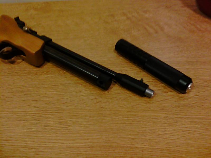 Hola pescamar, cualquier silenciador para aire comprimido te puede valer, yo he probado varios y te recomiendo uno de los que fabrica el compañero lobo, van muy bien y el acabado muy bueno. En este caso le he puesto uno chino de 14cm pero modificado internamente con 7 arandelas y 7 espaciadores. Las arandelas de agujero de 6mm. para 5.5 que es mi CP1....como decía "un susurro". Para cogerlo, hay que hacerle una rosca a la propia bocacha de la pistola o cambiarla por un adaptador. En las fotos se ve como va cogido