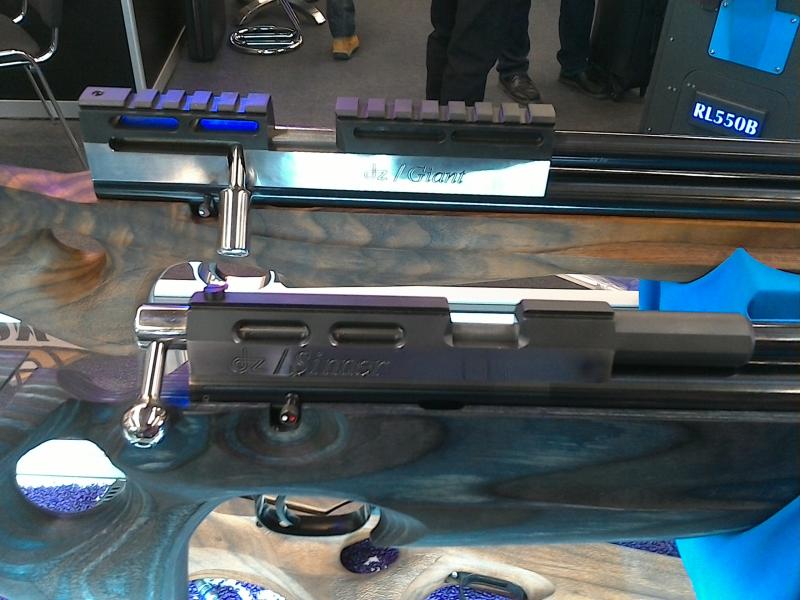 el modelo nuevo e imnovador LESLIY, con sistema de cañones intercambiables ,monotiro yyyyyy, sistema que quiebra el arma para su armado , el tubo del culatain es un deposito de 63 cm3 y a 300 bar tambien saldra en .177-.22-.25, esta me encanto, segun me comento Ed, arrojara 40 julios en cal. .25 con tan solo 25 cm de cañon, no esta mal,no.