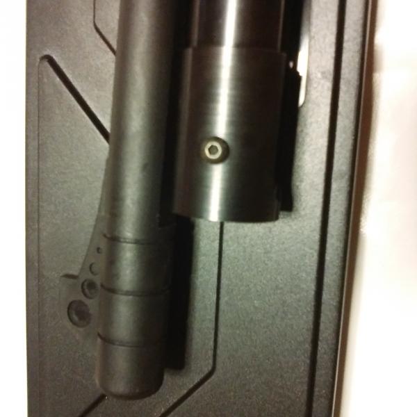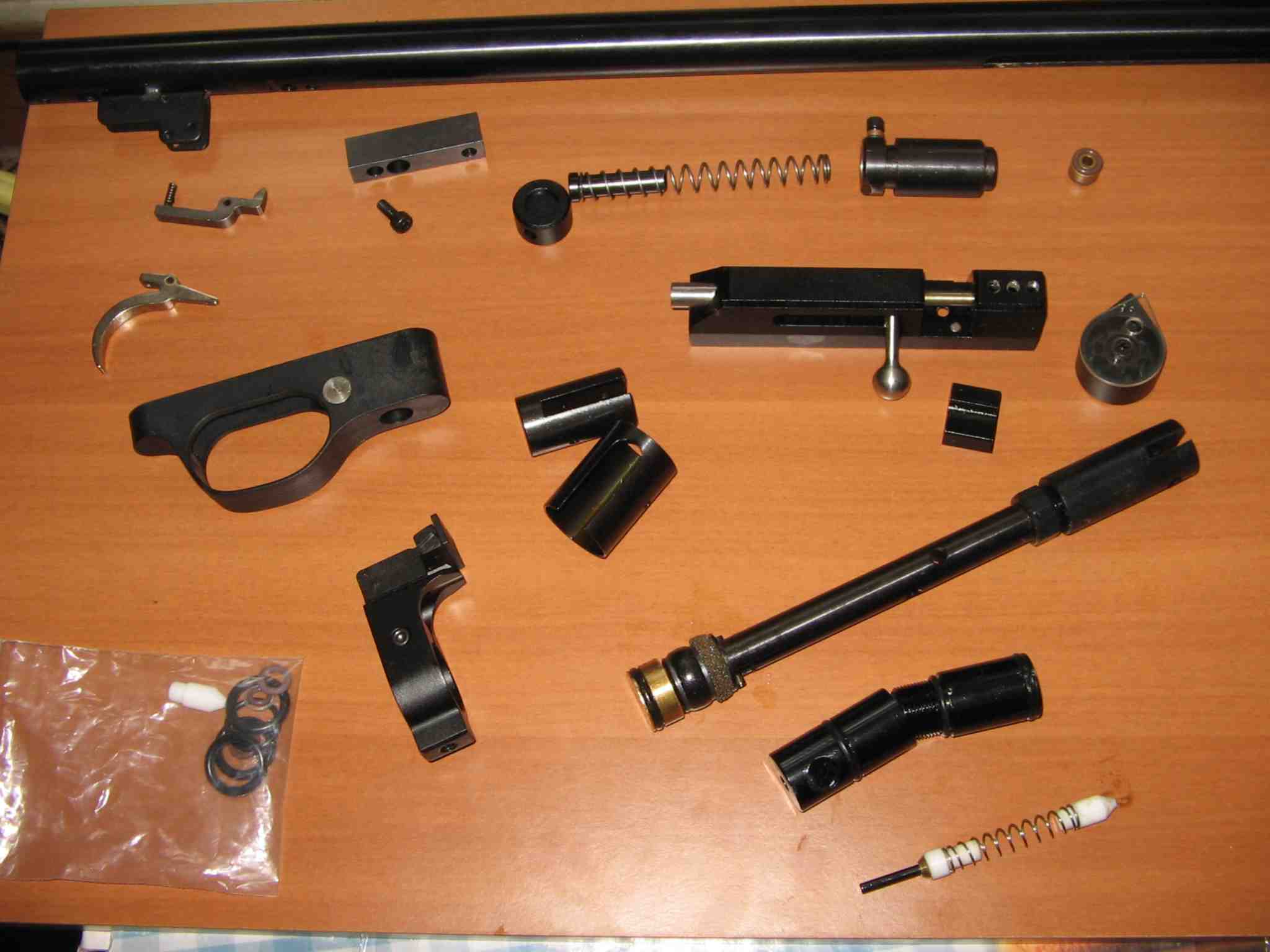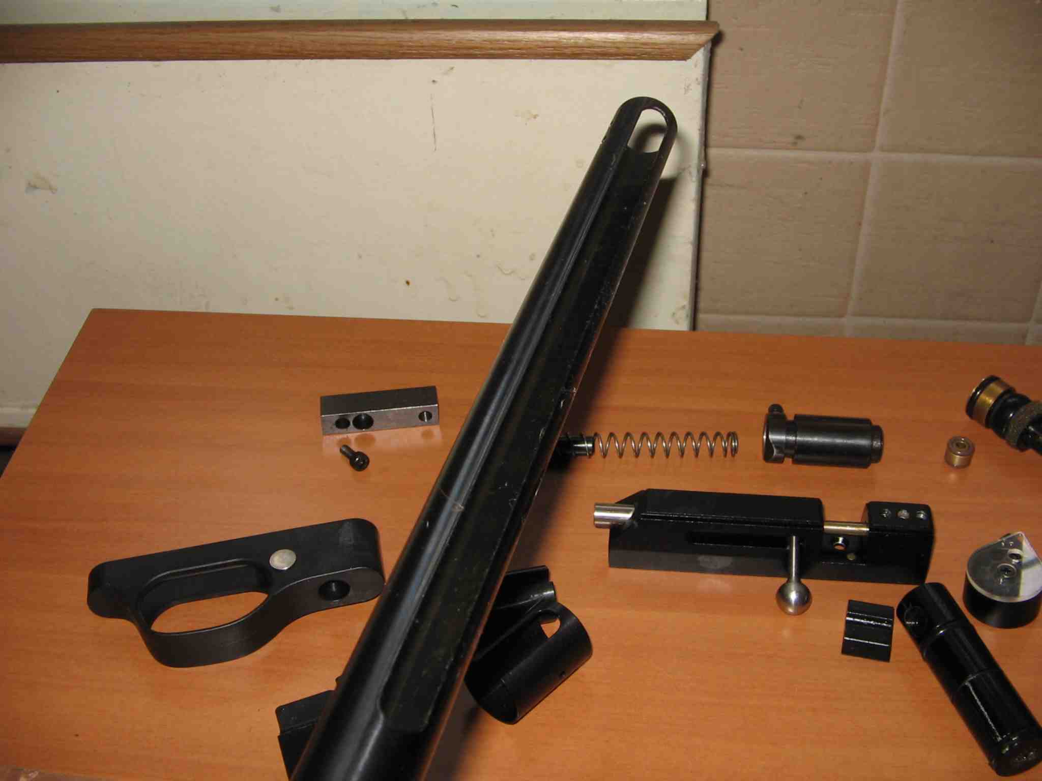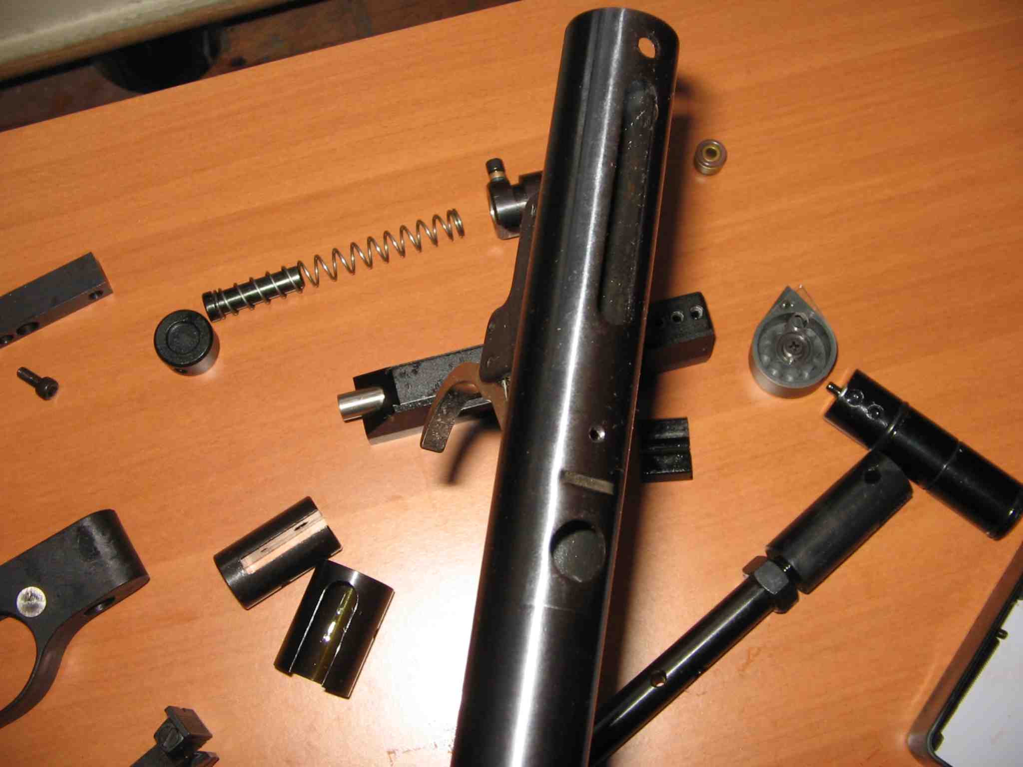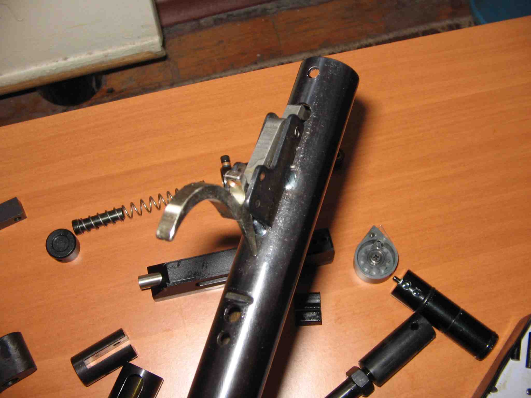 Los ajustes que he hecho han sido: galgar el 8 de sujección del cañon para que quede sujeto y paralelo al tubo de la bomba y suavizar el gatillo reduciendo esfuerzo y poniendo un tope.