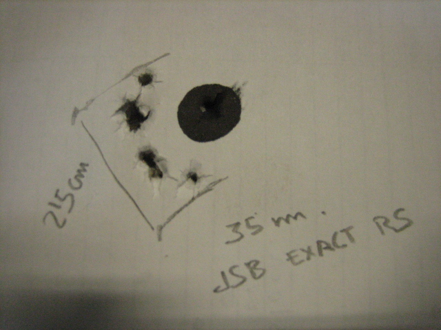 hoy he tenido la oportunidad de tirar a 35m (reales)y teniendo en cuenta que el arma solo tiene 10 Julios(y que un servidor no es precisamente "Sniper" profesional..je,je)me ha gustado bastante el resultado.