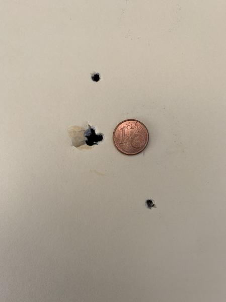 La tercera son 11 tiros, aquí los clics me han situado bajo el primer impacto, he corregido y realizado 10 tiros mas.