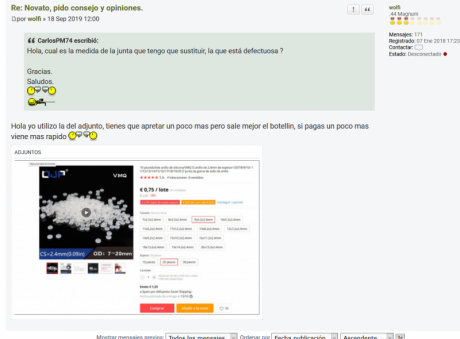 Compañero no recuerdo haber puesto yo ese enlace...aunque si lo hubiera puesto sería una junta equivocada para la que necesitamos para el cierre de la botella de co2, ya que la original es plana.