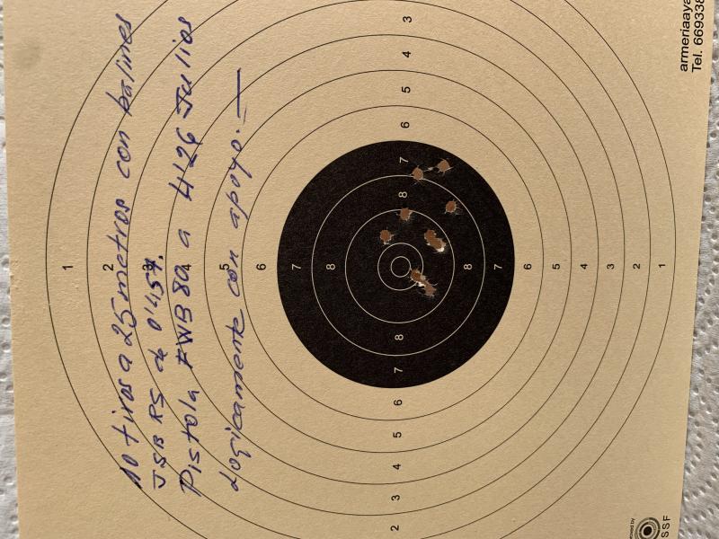 corcmari escribió:Hola, cómo había comentado, tengo una FWB 80, está a 4,26 julios de potencia y ahora mismo se me ha ocurrido hacer una prueba de precisión a 25 metros.