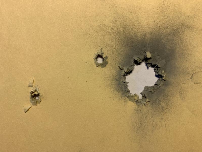 Son sólo cuatro impactos se ven perfectamente por el corte sobre el papel.