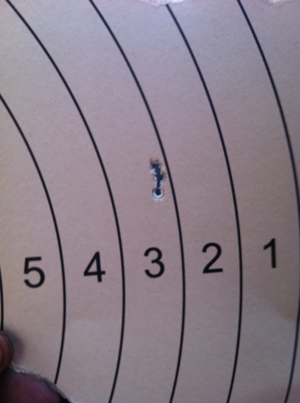 Tiré solamente 3 tiros a 100mts apuntando al borde superior de la diana, y increiblemente este fue el resultado