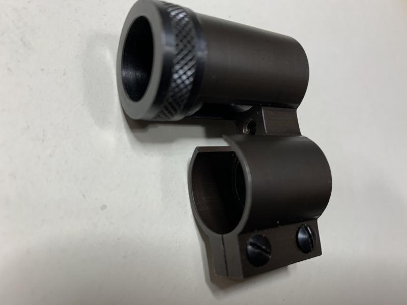 Adjunto unas fotos para que te hagas una idea, para mas claridad lo he puesto el un rifle de caza que además lleva freno de boca y se puede instalar igual.