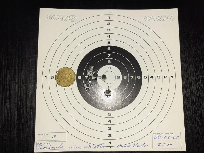 Se me olvidaba, la diana muy buena, esta carabina es capaz de hacer lo mismo a 50 mtrs.