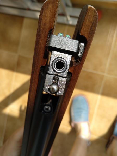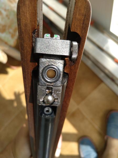 A lo "otro" que me refiero,o eso aprecio yo en las fotos,es la recámara.El orificio de salida del aire tiene como algo ahí aplastado,como un balin o algo similar.Puedes mirar y ver que tiene? Debe ser un orificio limpio....y pudiera ser que tuviera algo ahí (No sé por quien ni cómo) y hubiera provocado esa deformación en el cañón.