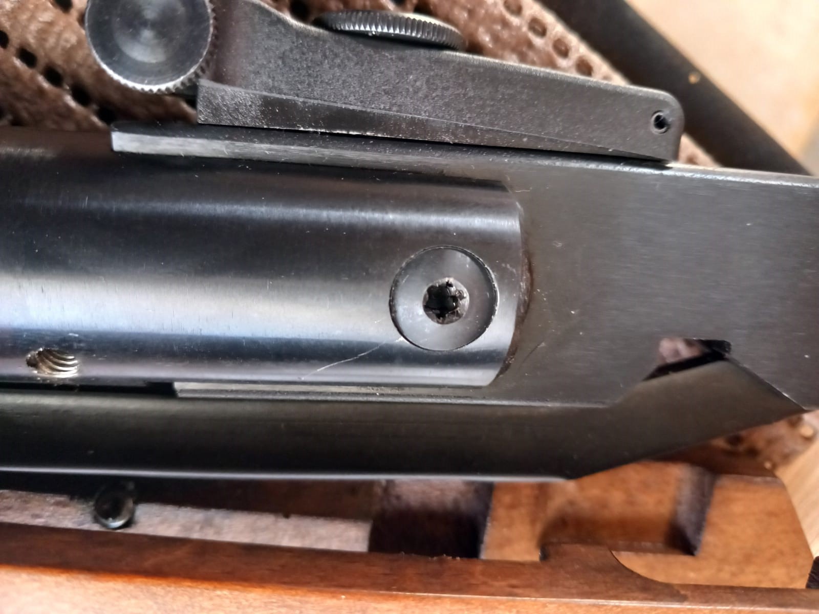 Me obligan entonces a desarmar (no se puede con culata puesta) la carabina para aflojar el tornillo chiquitín y darle una vuelta al grande para aflojar lo.